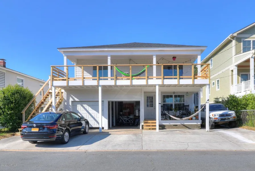 Fantastic opportunity for a duplex that has sound views . This was a single family home that was converted but could be converted back ( note the hidden stairwell on the floor plan). Currently the first floor has 2 bedrooms , 1 full bath , eat in kitchen/dining room , living room. Original hardwood floors in most areas.There is also a covered front patio . The second floor unit has 3 bedroom , 2 full baths , living room , kitchen. There are 2 balconies and a covered patio area . Sound views from the front balcony. Total of 2,396 sq.ft. 5 bedrooms and 3 full baths .The property has a fenced in backyard . There is a 2 car garage which contains the laundry areas for each unit. The exterior has been recently covered with a combination of vinyl cedar and lap siding., New Roof, Windows are insulated vinyl. Home is currently occupied with tenants that have expressed the desire to stay. The home is a short stroll to Johnny Mercers Pier and the ocean.