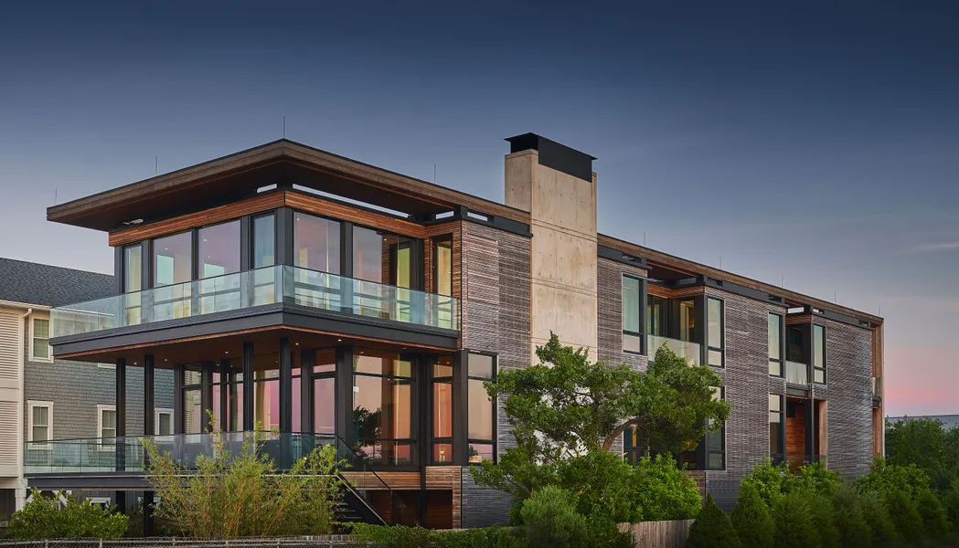 Mid-Atlantic Hawaiian Modern Inspired by the postwar phenomenon known as tropical modernism and the designs of mid-century Hawaiian modernist Architect Vladimir Ossipoff, this contemporary home by Michael Ross Kersting, A.I.A. & Christopher Parker, P.E. embraces the landscape & seashore with engaging spaces for seamless indoor-outdoor living. It's broad frontage as the Easternmost dwelling on Harbor Island, North Carolina located in the Township of Wrightsville Beach affords privacy and dramatic views of the Atlantic Ocean. Complete furniture package design by preeminent interior design firm Suzanne C. Moss, A.S.I.D. With a structural steel moment frame, deep cantilevered overhangs, cast-in-place architectural concrete, and horizontally juxtaposed ipe rain screen siding it leads the way for appropriate modernism in the Mid-Atlantic United States.