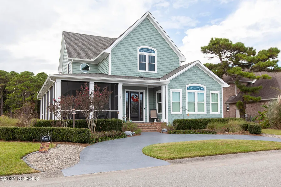 Absolutely lovely 4 bedroom 3 1/2 bath home in Kure Beach Village. Kure Beach Village has 2 pools, clubhouse, tennis court and deeded beach access - all this for 375.00 per year! Great location on the island because it backs to the government buffer zone. This custom home has an open floor plan with the primary bedroom on the first floor. Large screened porch off the side of the home. Door from the side load garage opens into the mudroom and laundry room - sink, cabinets and folding area. The kitchen has a large island, double ovens, beverage fridge, 6 burner gas cooktop, tile back splash and stainless appliances. Open to the dining room and living room. Living room has vaulted wood ceiling, gas logs and built-ins on either side of the fireplace. Upstairs is a second primary suite with own bathroom and vaulted wood ceiling and two additional bedrooms and bathroom. Central vac. Circular driveway at the front of the house. 50 year architectural shingles on roof. Impact windows. HVAC was replaced in 2020 and is a 3 split zone system. Crawlspace is encapsulated with a commercial dehumidifier - no dirt but concrete slab. This home would make an excellent primary or second home. Short-term rentals are not allowed in the subdivision.