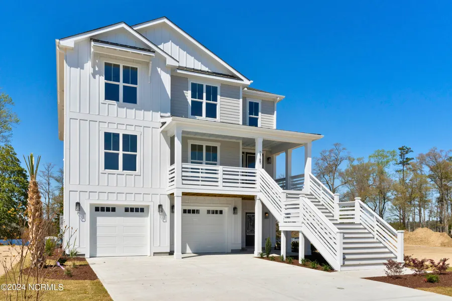 Discover this captivating new home by Kirk Pigford Homes, nestled on the serene banks of the Northeast Cape Fear River. This extraordinary riverfront residence offers an unmatched connection to nature's beauty. Embrace each day with awe-inspiring sunsets, casting a vibrant palette across the sky. Entertain or unwind on any level with its own deck, providing distinct views of the serene river. The main level bathes in natural light, creating a welcoming atmosphere. The living area offers a cozy fireplace with full tile facade, flanked by custom built-ins, flowing seamlessly into your gourmet kitchen and dining area. The kitchen is a culinary paradise, equipped with premium appliances including a sleek gas range with a stylish hood and a convenient wall oven. Its centerpiece is a spacious black center island complemented by elegant white perimeter cabinets, all crowned with luxurious quart...