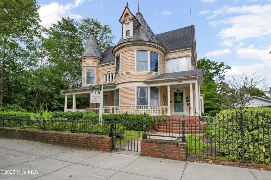 Charming Victorian Estate in Wilmington Historic District Nestled in the heart of the Wilmington Historic District, this unique Victorian residence offers a rare blend of historic elegance and modern comfort. Spanning approximately 6,290 square feet, the property features eight distinctive bedroom suites, each with its own private bath and unique character, making it ideal for a spacious family home or continued use as a luxury bed and breakfast. The main level is designed for both comfort and entertaining, showcasing formal gathering areas, a recently updated kitchen, and a large primary suite. A stylish powder room is cleverly tucked beneath a handcrafted wooden staircase, adding a touch of architectural charm. The second and third floors house the remaining seven bedroom suites, along with generous additional living spaces that offer flexibility for guests or family. Outside, enjoy Southern living at its finest with a welcoming wrap-around front porch and a private back porch that overlooks a serene garden and pond, surrounded by mature landscaping and towering trees for ultimate tranquility. An alley-access drive at the rear of the home leads to an additional vacant parcel, currently used for parking but equally suited for expansion, gardening, or outdoor gatherings. Located just minutes from downtown Wilmington, the Riverwalk, and top dining destinations, this property offers both historic charm and prime convenience. Currently operating as the CW Worth House Bed and Breakfast, it provides a seamless opportunity for continued business or conversion to a grand private residence.