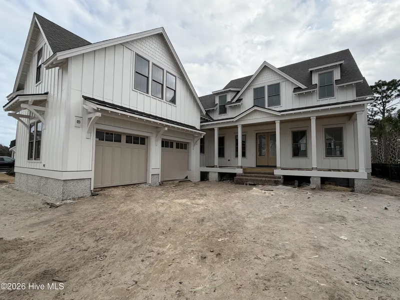 Custom-built by Schmidt Custom Builders, this thoughtfully designed Mason's Farmhouse blends timeless Southern architecture with refined modern finishes in the heart of East & Mason. A wide, welcoming front porch introduces light-filled interiors featuring 10-foot ceilings, vaulted spaces, and warm wood accents throughout the main living areas. The open-concept layout is anchored by a beautifully appointed kitchen with a large island, walk-in pantry, beverage center, and seamless flow into the dining and living rooms. A striking double-sided gas fireplace provides architectural interest and connection between gathering spaces. The primary suite is conveniently located on the main level, offering a private retreat with a spa-inspired bath featuring a freestanding tub, walk-in shower, dual vanities, and an expansive walk-in closet. Additional main-level highlights include a dedicated office with built-ins, a functional mudroom with cubbies and bench, laundry room, and powder bath. Upstairs, you'll find three additional bedrooms, multiple full baths, a loft area, and a finished bonus room ideal for a media room, playroom, or guest suit providing flexible living space to suit a variety of needs. Outdoor living is thoughtfully designed with a screened porch, rear covered porch, and a professionally planned landscape that creates privacy and usable green space. The backyard is enhanced by a dedicated outdoor cooking area, perfect for grilling and entertaining, along with space for seating and gathering around the fire pit. A two-car garage, quality exterior materials, and classic farmhouse detailing complete this exceptional new construction offering and make it a MUST SEE!! Located within the desirable East & Mason community, this home delivers a refined coastal lifestyle with enduring design, walkability, and character.