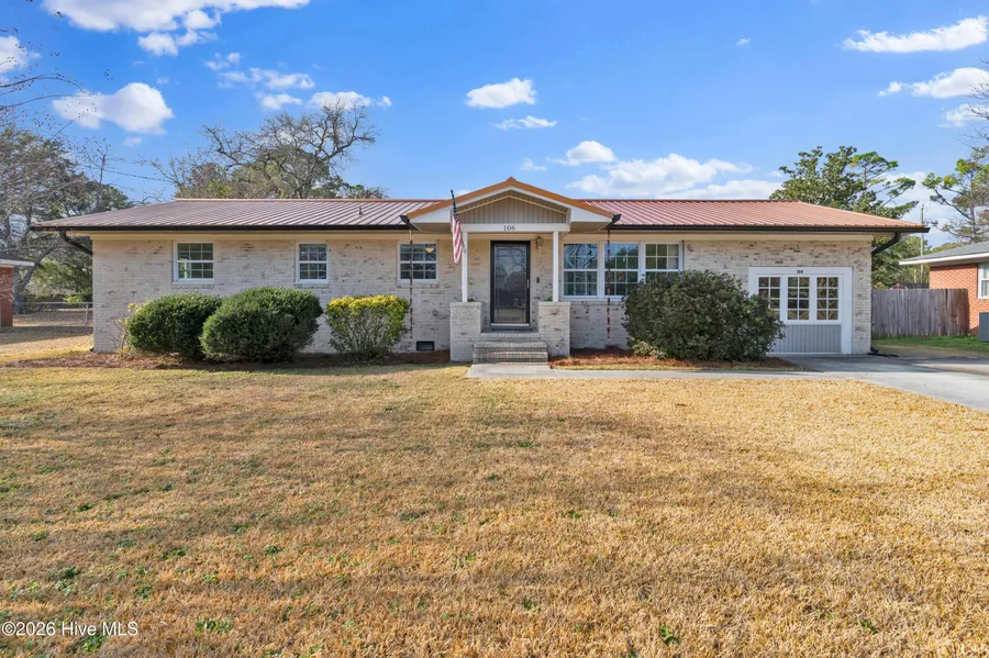 Welcome to this charming home, located in just the right spot-only 5 minutes from Wrightsville Beach and minutes from Mayfaire. Solid as a rock, built with brick. Metal roof. Remodeled kitchen. New subpanel and other updated electrical. New light fixtures throughout the home. New flooring, Fully remodeled bathroom with marble floors and updated fixtures. All new plumbing throughout, including laterals to the road. New ductwork. New large deck with a 10 X 12 pergola. New fire pit. Storage building included for added convenience. Spacious lot zoned ADU, allowing you to build a rental unit, mother-in-law suite, or pool house. The adjacent rear road provides separate access for a future additional structure.