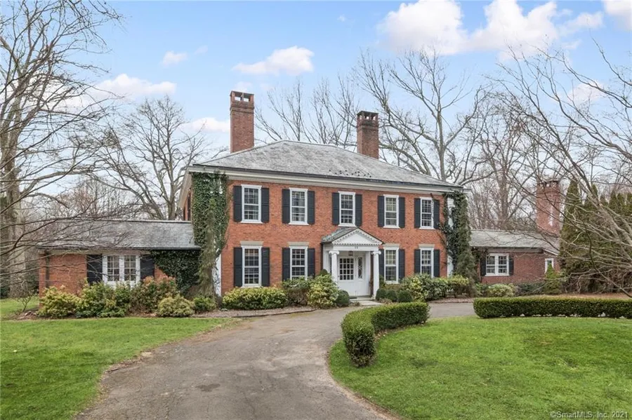 A rare find! This Georgian Revival-style Estate known as " Morris V. Tyler House" built of brick, set on 25 beautiful acres features a horse barn, carriage shop, paddock, green house and pond. The Georgian Manor house has a welcoming, generous interior which has been renovated. It has 6 bedrooms,5.5 baths, 6 fireplaces in 6583sf of living space. The spacious living room has a fireplace and double doors opening to a park-like backyard. Generous size study with wood burning fireplace, a sun filled room next to the study could be used as an artist studio or green house. The over-sized kitchen opens to the family room. Sweeping master bedroom suite with a fireplace. Brand new driveway, brand new well water storage. Award-winning school district, 10 minutes to trains, 70 miles to NYC. Tremendous privacy yet close to major roads, library and town center, Yale and New Haven's renowned museums, ...
