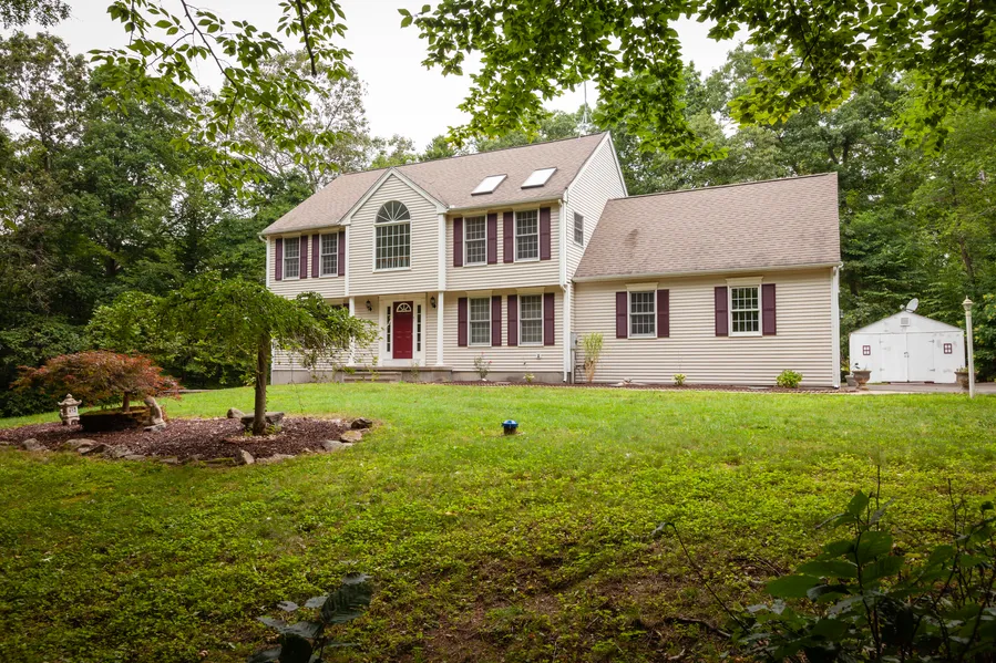 The private, light-filled, five bedroom, 3 1/2 bath Colonial home in North Madison has an open, bright and updated floor plan, and is situated at the end of a very quiet cul-de-sac. The newer kitchen features white cabinets, Silestone quartz countertops, subway tile backsplash, stainless appliances and lots of natural light, which pours in through the windows and skylights. In addition, the entire first floor has new hardwood floors, with the exception of the beautiful marble tile in the front entryway.