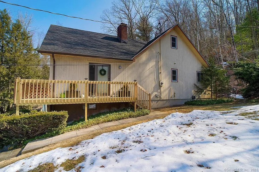 Gorgeous tri-level Contemporary home on 5 acres with beautiful views! This feels like a ski chalet in Naugatuck. Walk into the sun-drenched living room with vaulted ceiling, and you will just be amazed! Enjoy beautiful views from the living room while staying cozy by the fire. The living room flows into the kitchen, which is open to the dining room. The kitchen boasts stainless steel appliances, painted white cabinetry, modern open shelving, and a peninsula for extra seating for informal dining or entertaining. The main level has one large bedroom and a full bathroom with dual sinks. Upstairs, the bedroom loft is large, with two closets, a full bathroom with tub and dual vanities, and a private balcony. The walkout lower level is finished and adds 475 square feet of living space. This space is perfect for an additional bedroom, in-law suite, playroom, home office, or many other possibilities! Outside, enjoy your wrap-around deck or grassy yard, while enjoying privacy on this 5-acre lot that backs onto the State Forest. This home is conveniently located to shopping, parks, restaurants, routes 68 and 8, and I-84. Don't miss your chance to call this HOME!
