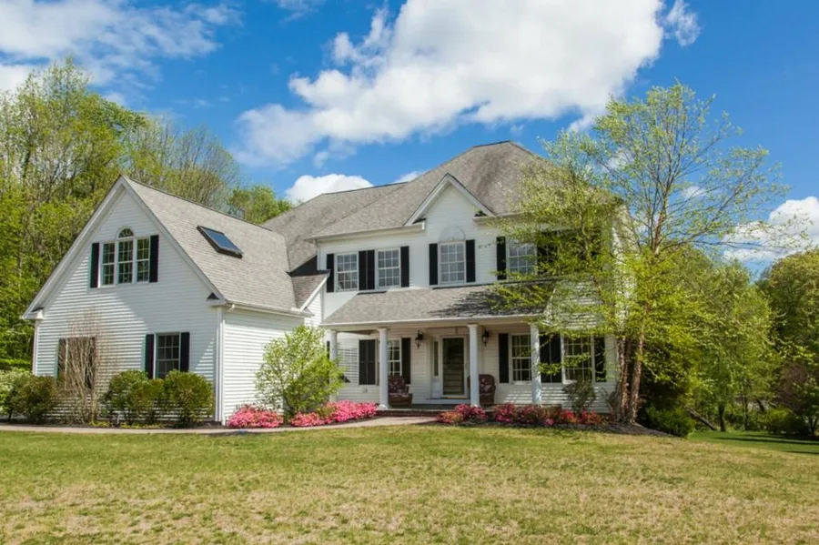 Enjoy country living in the bucolic setting of North Guilford located across from over 800 acres of water company property. Built in 2003 on a corner lot in a small subdivision this home offers over 3700 sq ft of living space with an additional 1100 sq ft in the finished walk out basement. The front covered blue stone entry welcomes you to the first floor which features a large eat-in kitchen, laundry room, large living room with fireplace, dining room, den, and office. Located just off of he kitchen is an elevated deck overlooking the level yard. Once you walk up to the second floor you are in the 15x25 family room with two bedrooms off to one side. On the opposite side is a study and the large main ensuite with two walk-in closets, full bath and 15x23 office/exercise room. The lower walk-out finished basement consists of three rooms, a full bath and walk out to the lower patio. Located...