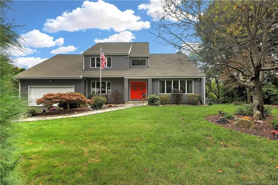 Sited on 1.3 nicely wooded acres North of the Post Rd this contemporary awaits. Enter the soaring 2 story foyer and be impressed ! The large living room boasts Pergo floors and Dining room has hardwood flooring. The European style kitchen has an abundance of cabinets and a center island. Convenient to the kitchen is an attached 2 car garage and a half bath with tile floor and laundry. Impressive is the the master bedroom with a beautiful tres ceiling, walk in closet, full bath and a lovely balcony overlooking an ultra private yard. In addition there are 2 more spacious bedrooms and a huge bonus room, 4th bedroom or family room with plumbing for a bar. There is a large walk in attic as well as a pull down attic access. The lower level is unfinished, has high ceilings and plumbing for a full bath. Maintained with pride this lovely home is sure to please!