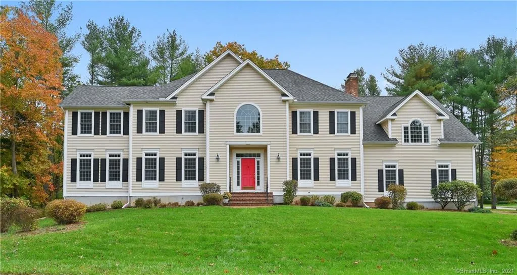 This stately and spacious Colonial sits on a cul-de-sac of only eight similar value homes and is located just minutes to the town Green and all that Guilford offers. The dramatic two-story foyer leads to a large front-to-back living room with fireplace and walls of windows. French doors open to a sunny office, perfect for working from home. The formal dining room is highlighted by a second fireplace and stunning chandelier. The generously sized kitchen features cherry cabinetry, granite counters, and stainless appliances. The breakfast area opens to a large deck overlooking the brick patio with built-in firepit. Rounding out the first floor are two half baths, large laundry room, and oversized 3 car garage. Upstairs are 4 bedrooms and 3 full baths. The primary suite has 2 walk-in closets and large bath with whirlpool tub. Two bedrooms share a hall bath, while the 4th bedroom has its own ...