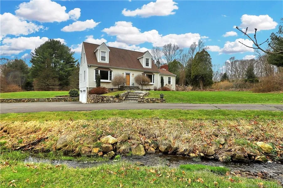 A world of wonder awaits you! Many recent updates and move in ready, this cape with beautiful large windows that provide ample natural light is centered on one level acre of land in the best commutable location. Close to boutique shopping, restaurants, schools, lakes, highways, and all activities and events that Southbury, New England has to offer. 4 bedrooms, upgraded baths, remodeled kitchen featuring: custom touch cabinetry, undermount lighting, stainless steel appliances, wine cooler, Carrera Italian granite countertops & detailed center island with seating. Kitchen flows into vaulted great room with wood burning, floor to sky brick mason fireplace. Sliding French doors spill out to a Trex deck & retractable awning, luscious lawn with a view of endless skies and colorful, blazing sunsets. Hardwood floors in entire home, formal dining room, formal living room w/built in bar area, main level bedroom w/bath or a home office add to this distinct floor plan. 3 high ceiling bedrooms & 1 bath with radiant floor heating on upper level complete this well-maintained residence. Full lower level can easily be finished as it is equipped w/underground system by Ct Basements-DRY. Newer mechanicals, all new copper plumbing, programable thermostats, ceiling fans, security system, Central Air & electric dog fence. Professionally landscaped with natural brook, stunning stone walls, semi circular driveway, and basketball area. New home, new memories, new adventures!