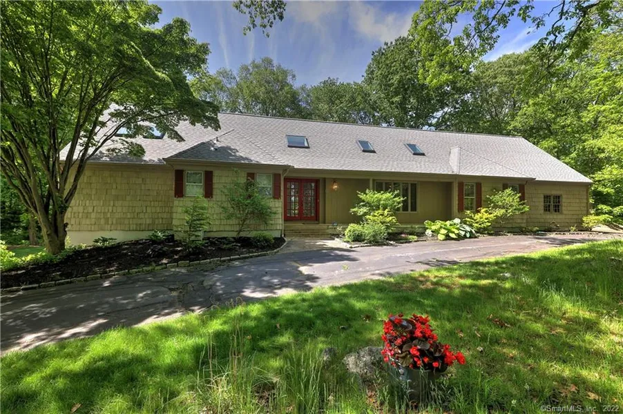 Welcome home to this beautiful over-sized Cape with an open plan and contemporary flair. Set on a lightly wooded corner lot with a circular drive, this home provides a delightful private retreat and is just minutes from Yale. The entry foyer is a wonderful place to greet guests. It leads to the beautifully updated kitchen featuring granite counters, tile backsplash, newer stainless appliances and plenty of cabinets for storage, plus a lovely dining area with triple windows and a top transom that provide views of the patio and yard. The fireplace surrounded by built-ins is the focal point of the adjacent family room, which also includes a wall of windows to let the natural light in. The expansive formal living room and dining room are perfect for entertaining. The main level bedroom suite includes a walk-in closet and a bath with whirlpool tub & stall shower. The laundry room and two half...