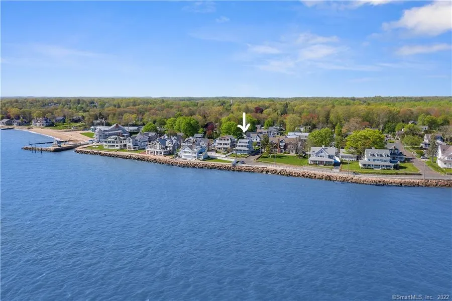 19 Middle Beach Road, a two-home compound with sweeping views of Long Island Sound at water's edge within easy access to the village of Madison and its many amenities. Each home is complete with energy efficient heat and A/C. The main house, 3,697 sf, was completely rebuilt meeting FEMA guidelines of 2014. It has a gracious open floorplan, views of Long Island Sound from almost every room and ability for easy access for a quick swim or boat ride. The main house enjoys a state-of-the art kitchen leading to a Great Room(29x27) with walls of glass and an uninterrupted view of the water. The first floor is further enhanced by a sitting room, informal and more formal dining areas, wet bar, and large patio with gardens. The Primary suite, on the 2nd floor, has a private sunroom overlooking the water, small balcony, spa like bath and dressing room. The 2nd Bedroom has a private bath and walk-in closet. The 3rd floor finds three Bedrooms with water views and two full baths. A private path from the rear garden allows you to approach the courtyard of the 936 sf year-round Guest House. The 1st floor has a recently designed kitchen, dining area and 19x10 Living Room with working fireplace. A staircase leads to the Primary Bedroom, two additional Bedrooms and full Bath. This home is in the heart of historic Middle Beach and has made conversion to an exceptional year-round compound nestled between the water and village.