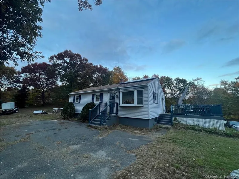 Contractors Take Notice! Solid 3 bedroom ranch on 1.24 acres in need of cosmetic TLC offers great potential. Nice large yard enjoyed from deck off the kitchen to enjoy the natural surroundings and occasional visiting falcons! Inside, the living room and kitchen have been opened, including vaulted ceiling. Finishing work will be required and kitchen will need new cabinets but does offer great potential to customize. Bathroom will need to be updated as well all floors. There is a full, unfinished basement with hatchway to outside. This home could be a cute and cozy home for anyone wishing for a quiet retreat and single level living! Priced to sell! SOLD AS IS. Highest and Best Due by 9PM October 26th,