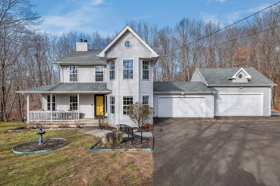 Well maintained home located in a small neighborhood on over 2.5 acres. Updates include the HVAC system in 2020, roof replaced in 2018 when the additional 2 car garage was added, kitchen remodeled in 2016, custom coffee/entertainment cabinetry added to the kitchen. Enjoy spending time on the inviting front covered porch. The first floor consists of a family room, dining room with fireplace, large eat-in kitchen, mudroom area off the entrance from the garage has laundry and a full bath. The 2nd level has two bedrooms which share the full hall bath. The primary bedroom has a dressing room/office area, two closets and a full bath. The lower level walk out basement has a finished space with a main room, two finished rooms (potential fourth bedroom) and a storage area. The septic system was recently pumped in October and has a 1250 gallon tank. The kitchen stove and dryer run off of propane. There's plenty of storage in the two garages with a total of four bays. The garage that was added in 2018 has pull down stairs to access the storage above. Roof replaced 2018. Association fee for snow plowing and road maintenance $400-$500 a year. Preferred closing after May 31, 2023. Weekend showings preferred. Please give 48 hours notice for weekday showings.