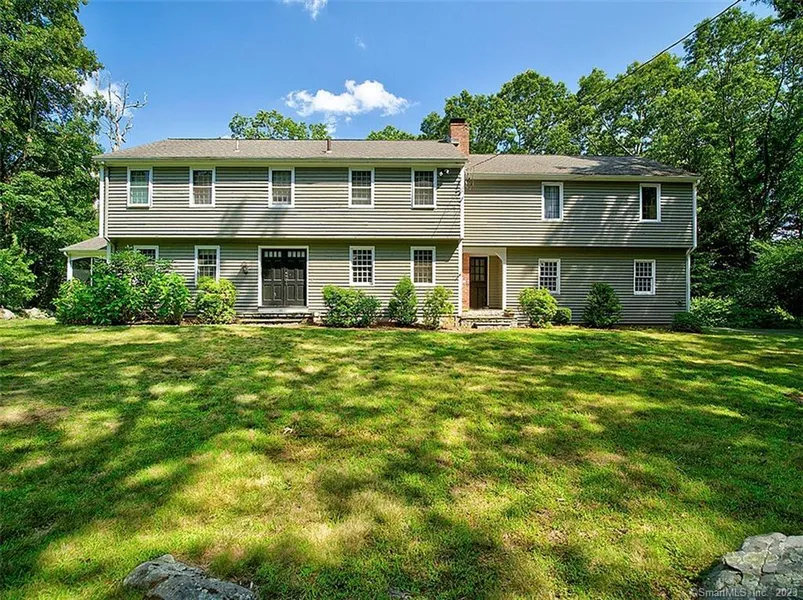 Welcome to 12 Bishop Drive. A wonderful 4 Bedroom Colonial with loads of charm and character located at the end of a Cul De Sac in a most convenient Woodbridge Location. This beautiful home was built on a great, private 2.08 acre site with stone walls and plenty of yard area for outdoor entertaining and recreational amenity. You are greeted by a charming entry foyer which leads to both the Living Room and Kitchen. The front to back living room features wide plank oak floors, built-in corner cabinets and access to the lovely screened porch with brick flooring and vaulted ceilings. The spacious eat-in kitchen opens to the family room and features granite countertops, a gorgeous brick fireplace, an eat-in area and a breakfast bar! The light and bright family room boasts vaulted ceilings, walls of glass, skylights and exposed wood beams! Off the kitchen and family room you will find a fantastic mudroom which has a second front entrance and access to the 2 car garage. The large primary bedroom offers tons of closet space and has a stunning primary bath with a soaking tub, walk-in shower and double vanity. There are 3 additional generous sized bedrooms all with beautiful hardwood flooring. The second floor is completed with a loft/sitting room in the hallway and an oversized laundry room. The lower level has a great family room/recreation room & full bath. City Water!! The location offers convenient access to Yale, downtown New Haven and Route 15. Award winning school district!!