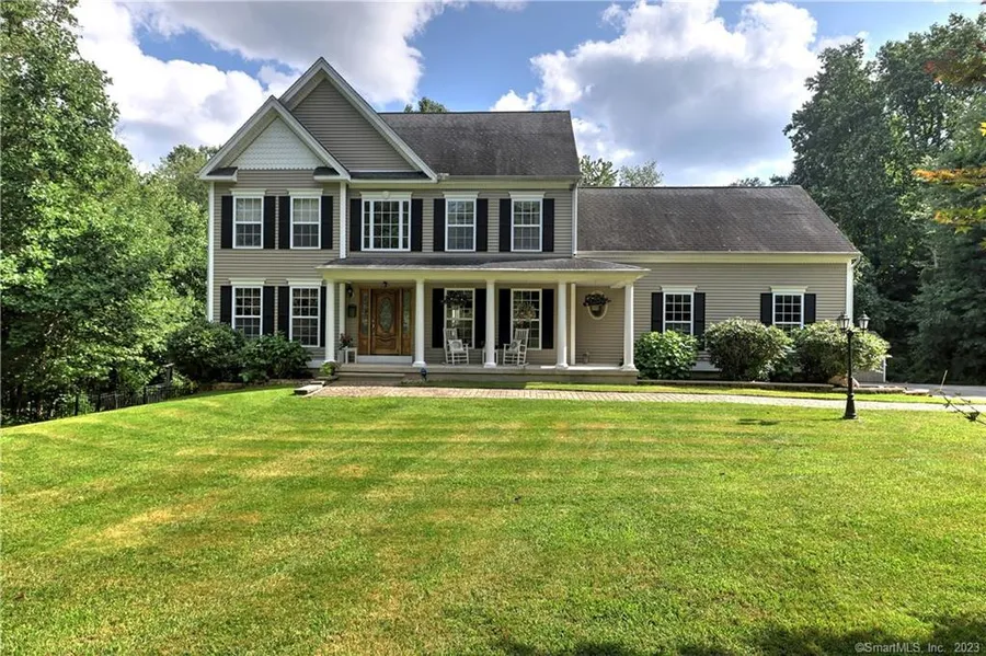 This beautiful custom colonial surrounded by lovely landscaping and paver walkways is set on 4.41 private acres. With attention to every detail, the sellers have created a home that is warm and inviting - and now you can make it your own piece of paradise! The covered front porch welcomes you home. The main level has generously sized rooms, an open plan & HW floors. Arched doorways create a subtle separation between the spacious dining room & thoughtfully designed cook's kitchen which features a Viking stove, an oversized island w/breakfast bar, tumbled marble backsplash, granite counters, SS appliances, pantry & dining area. A beautiful stone fireplace is the focal point of the great room with an entertainment center & sliders to the Trex deck. The mudroom/drop area between the kitchen & garage and a half bath complete the main level. Gleaming wood floors continue upstairs to the primar...