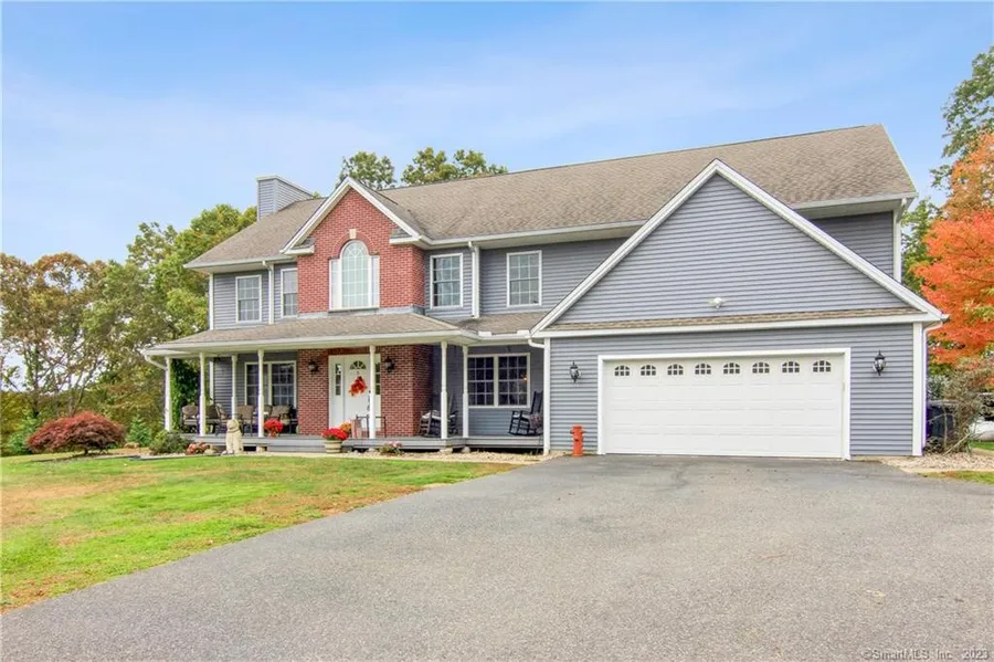 Drive up this quiet culdesac road to your tranquil piece of paradise. This home is set on .74 acre lot with mature trees and a farmers porch (Trex decking) out front that overlooks the grounds and in back, the lovely patio and Trex deck, above ground mineral pool are the perfect place to entertain! Gather in the kitchen with a large island and highend newer appliances including a dbl fridge and a 4 burner gas cooktop/oven while you make your favorite meal for friends and family. Dine al fresco under the stars or in the large dining room meant for entertaining. Enjoy the toasty warmth of the pellet stove! The family room with the gas fireplace and open floor plan is great for large groups. Retire to the primary suite with an oversized walk in shower. The other 4 bedrooms with large walkin closets on the second floor share a full bath. The lower level is unfinished and could add another 16...