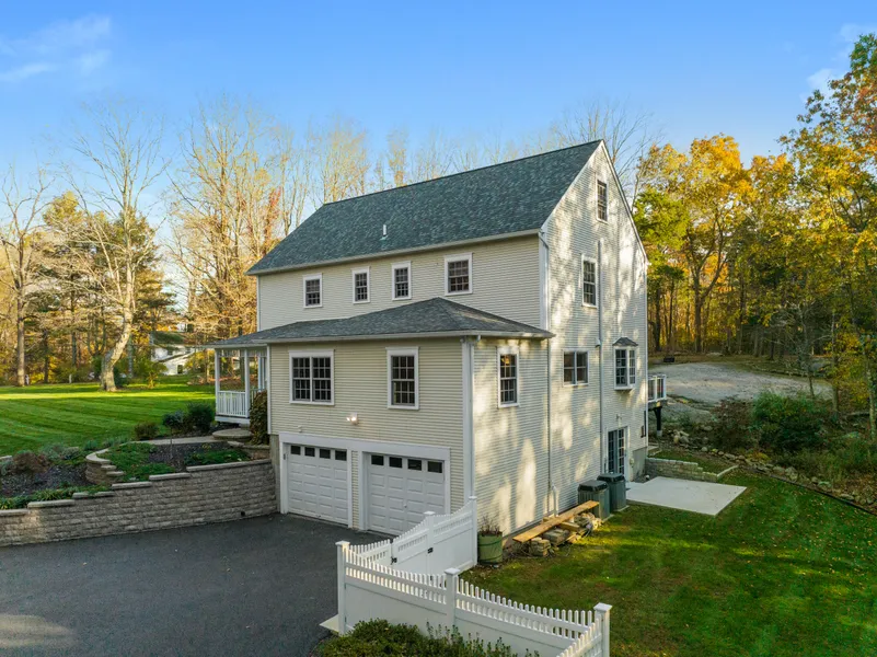 Nestled on a serene and private, sprawling 2.8-acre property, this colonial-style residence exudes rural charm, a must-see property for those who appreciate private, country-inspired living. The professionally landscaped yard and beautifully lit stone walkway enhance the property's overall curb appeal, inviting you to its picturesque front porch, a perfect setting for its warm and inviting welcome. This 4-bedroom, 2.5-bathroom home offers three levels of comfortable living, with an abundance of bright, natural light throughout, spacious living and dining areas for both family gatherings and entertaining. While the kitchen and bathrooms maintain their original charm, the possibilities offer the chance to create a space that's a reflection of your own vision. The walk-out basement opens up to a patio and ideal location for your future pool oasis. A privacy fence surrounds the property, ensuring a tranquil retreat, and there's even a scenic trail along the perimeter for nature enthusiasts leading you to the new spacious back deck overlooking a large, expansive solid granite boulder. This meticulously cared for home is a testament to a smart investment with updated mechanicals, newer roof, windows, and new Trex composite decking, providing peace of mind for years to come. All the important updates have already been taken care of, creating a solid foundation for your future home to suit your taste and style. This is your opportunity to turn this house into the home of your dreams.