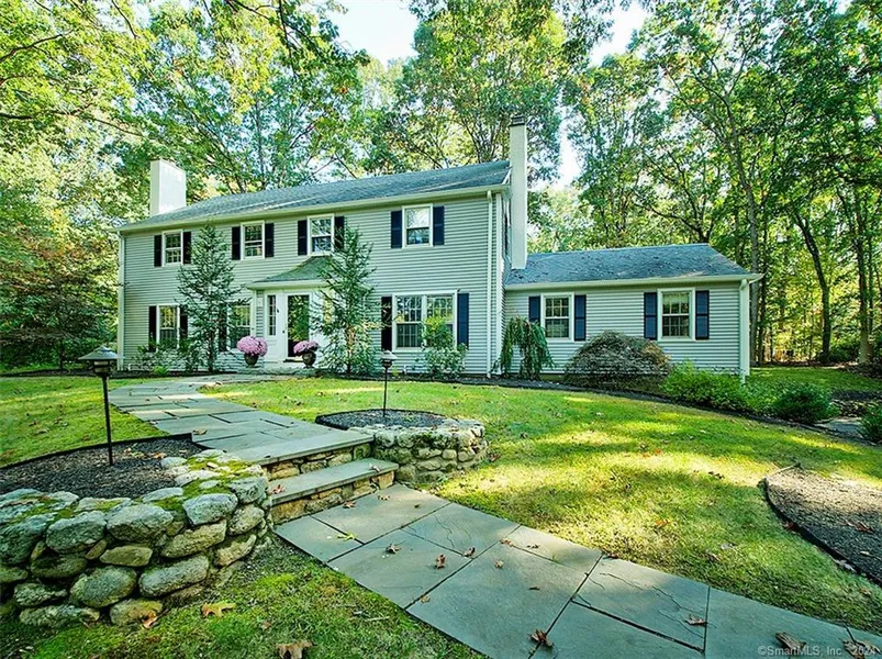 Absolutely stunning Berner Lohne built colonial located in the sought after Stoddard Hill section of Woodbridge. This wonderful home sits on a fantastic, level and private 1.77 acre lot which has potential for a pool or tennis court. It has been extensively renovated and offers tons of charm and character along with hardwood floors throughout (except kitchen/dining). The centerpiece is the breath taking Chef's kitchen which boasts an oversized Island with granite countertops, abundant custom cabinets & high end stainless steel appliances. The kitchen opens up to both the family room, w/fireplace, and the informal dining room with gorgeous built-in corner hutches! The expansive living room, with a wood burning fireplace, is currently used as a dining room but offers many potential uses. Off the living room you will find a spacious music room/library which can also be used as a home office or first floor bedroom. The first floor also includes a full renovated bath, laundry & a three season enclosed porch. On the second floor you will find four very generous sized bedrooms including the primary bedroom with a walk-in closet and primary bath. The walk-up attic is partially finished with a gym/recreation room and plenty of storage space. Some of the improvements in recent years include: renovated kitchen, 2 renovated baths, a completely new septic system and new vinyl siding. The location offers convenient access to Yale, downtown New Haven and Rt.15. Award winning school system!!