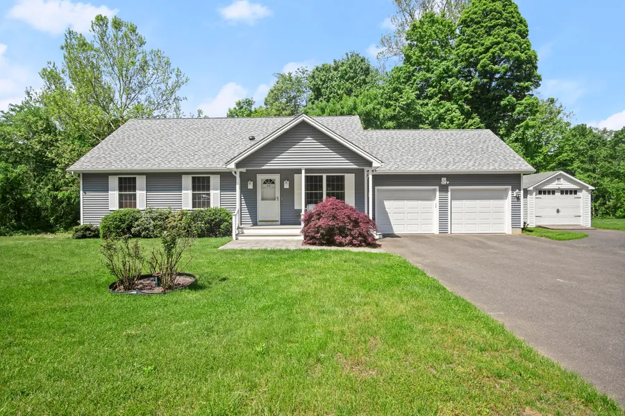 This amazing 3 Bedroom, 3 Bath Ranch style home, built in 2014, situated on 1.33 acres, surpasses all expectations. The home is flooded with natural light. The Living Room flows into the Dining Room, with sliders to an outside Deck for day, evening or weekend enjoyment. The Kitchen has wood cabinets, white appliances, and a pantry. The Primary Bedroom is a generous size, complete with a full bath and walk-in closet. The 2 other Bedrooms also are generous sizes. You will be happily surprised as you enter the hidden door in the Living Room, that brings you upstairs to a huge, unfinished space that is perfect for a Primary Bedroom Suite, complete with Skylights. The Full, partially finished, Walk-out Basement, with 9 foot ceilings, is heated, and has a beautifully designed full bath. Double Doors lead you out to a beautiful manicured lawn that surrounds the home. Features include Central Air, a 2 Car Garage, Propane Heat, Laminate Flooring, 200 Amp electrical service, a Generac Generator, and a Shed. The Town of Southbury offers numerous activities, great restaurants, a movie theater, and shopping. Ideal commuting location. Begin you next chapter of life here!