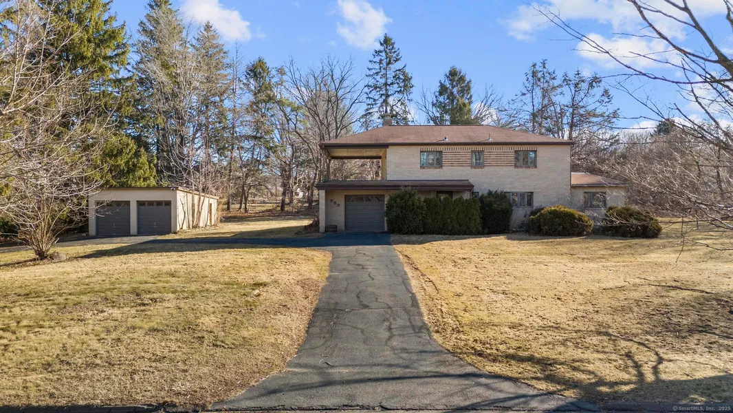 This charming 3-bedroom, 1.5-bathroom Colonial is a true gem, boasting a 3-car garage and situated on a gorgeous flat property- just shy of an acre. This home offers tons of curb appeal, with its inviting architecture & elegant horseshoe driveway that adds a unique touch. The combination of the spacious yard and the lovely details of the home's exterior makes for a striking first impression. Inside you will be greeted by a foyer, an expansive living room and dining room with a fireplace, a large eat in kitchen, an office/sunroom and a powder room. Moving up the staircase to the second level there are three bedrooms, one of which is a spacious primary bedroom with ample room for expansion, particularly off the primary bedroom balcony. Capping off the second floor is a full bath. The home is equipped with beautiful hardwood floors throughout beneath the wall to wall carpets. Whether you're looking to expand or simply enjoy the current footprint of this beautiful home, this property exudes elegance from the moment you arrive.