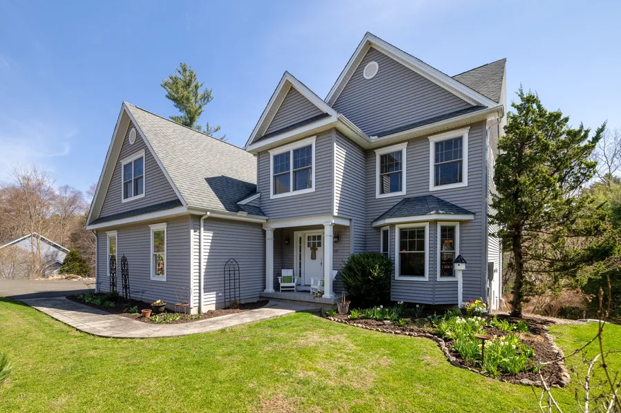 Highest and Best By Saturday, April 26th at midnight. Offers will be reviewed Sunday the 27th. Beautifully maintained by its original owners, this stunning home offers a peaceful retreat with thoughtful design throughout. The bright, open-concept floor plan is perfect for entertaining, spending time with loved ones, or enjoying quiet moments at home. Expansive windows and the back deck offer serene views of lush, wooded surroundings. Outdoor living includes a patio, screened-in gazebo, stairs leading to a gentle brook, and an array of seasonal plantings. Inside, hardwood floors flow throughout the main level, featuring a gas fireplace, birch kitchen cabinetry, and exposed beams. Upstairs, the spacious primary suite includes a beautifully renovated full bath, walk-in closet, and a private office-ideal for remote work. The second floor also offers a large laundry room, a second renovated f...