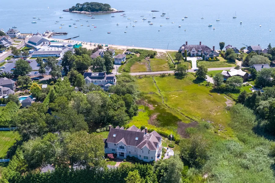PRIVATE AND PEACEFUL WITH DEEDED BEACH ACCESS! Panoramic views of LI Sound are enjoyed from almost every room of this gracious,very private home with ample room for family & lucky guests. Sited back from Middle Beach Road West and overlooking the ever changing salt marsh, enter the inviting double height foyer to discover spacious, high ceilinged and light filled rooms that are throughout the house. The fully equipped kitchen has a separate butler's pantry, table and counter seating and is adjacent to the formal dining room. There is also access from the kitchen to a large terrace with built-in seating & a gas grill with counter space making it ideal for easy, al fresco dining. The coffered ceilinged den has a wood burning, stone FP with another entrance hall providing access to a covered porch as well as separation from the LR which features handsome crown molding and a gas FP. There are also wide halls, 2 powder rooms, roomy closets & a laundry on this level. The 2nd & 3rd levels have 6 BR's (including a separately entered suite w/ kitchen, perfect for a nanny or any number of uses) all with walk-in closets and 5 full and one half baths. The primary suite has a balcony to take in the view, 2 walk-in closets (one is particularly large), two vanities with a separate shower and bath tub. There's also another laundry room on this floor. A 2nd floor porch offers a special perspective of the incredible views.