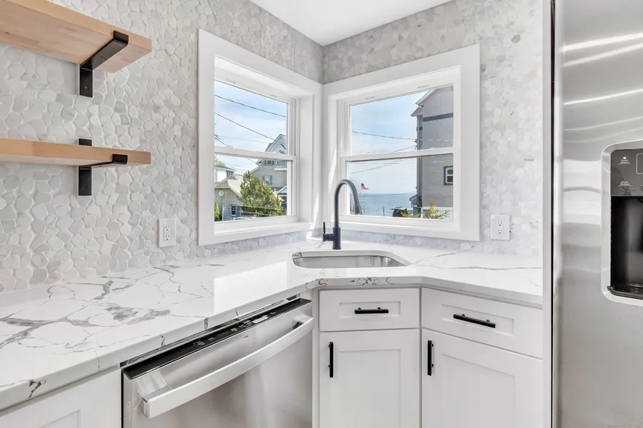 Back on Market Garage Added! This beautiful, three bedroom two full bath colonial has gone through a complete transformation. With water views from multiple levels you can walk to the beach. This beautiful home has been completely remodeled and brought FEMA compliant All new windows, roof and siding. Three bedrooms complimented by an open floor plan eating in kitchen with entertaining area. Two full bathrooms, completely remodeled. The master bedroom has a beautiful walkout deck to enjoy sunsets and fabtastic water views . All appliances included. High-efficiency heat and central AC. High efficiency hot water heater as well as washer dryer unit. Plenty of storage Significantly reduced flood insurance elevation certificate provided upon request.