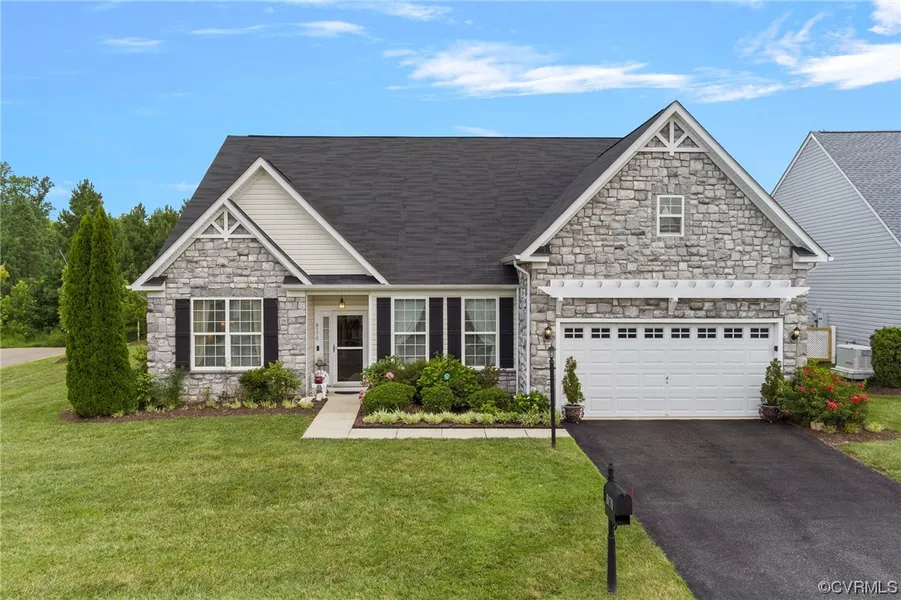 A perfect opportunity to own a beautiful and meticulously maintained, one level living home in a move-in ready 55+ Active Adult Community! This extremely sought after SEQUOIA floorplan offers low maintenance living at its finest! Equipped with an expansive 1st floor Primary Suite with Tres ceilings, 2 walk-in closets for both "him and hers", and a luxurious soaking tub to relax and enjoy yourself after a long day. This floorplan also offers a secondary bedroom with full en-suite bath, perfect for in-laws or out of town guests! Enjoy an open living area with crown moldings and recessed lighting throughout. A Chef's Kitchen with Corian counters, custom backsplash, Double Oven and SS Appliances! A 2-car garage just steps away to a walkup attic with potential for an extra bedroom, office, or flex space of your own! Step outside to a custom patio with Brazilian granite, manicured landscaping with irrigation and Whole-Home Generator! Community Amenities Include: 2 clubhouses, fitness centers, 2 pools, Pickleball Court and walking trails throughout. Access to Rees Jones-Designed Golf Course at Vinterra & New Kent Vineyards Winery and Café. Only 30 minutes from Richmond or Williamsburg!