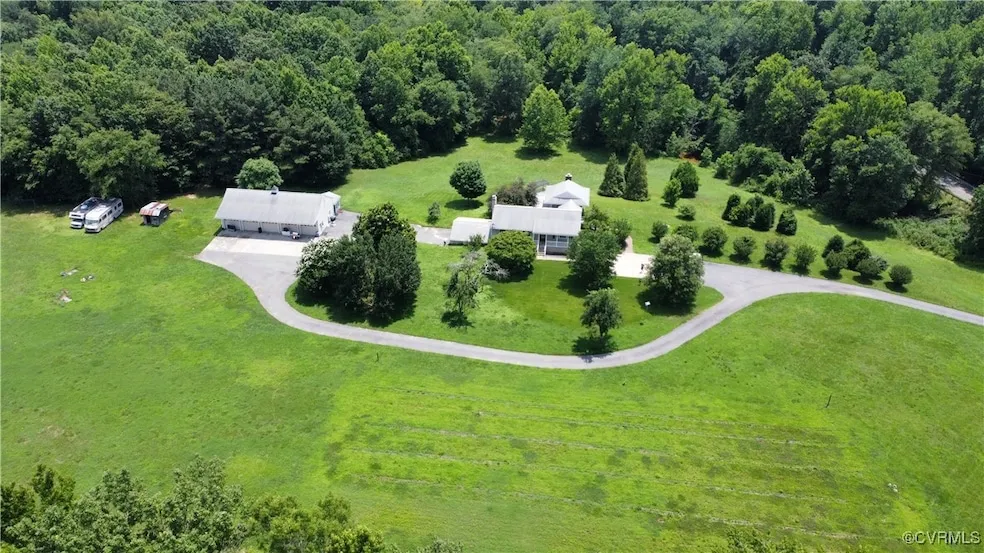 24.5 Acres with approximately 10 acres open land surround this custom brick and frame ranch dwelling with finished partial basement and 5 car detached garage/shop building. Located at Tunstall Station in northwestern New Kent County, this property is ideally suited for major gardening, horses and other animals, or specialty farming. The freshly painted dwelling has undergone kitchen and bathroom refinishes. Main level includes a large family room with fireplace, wood beams in the cathedral ceiling, and custom deck. Basement includes a den/rec room with fireplace, huge bedroom with custom closet finishes, office room that could be used as a 4th bedroom with shared walk in closet, full bath with new tile shower, and large laundry room.
