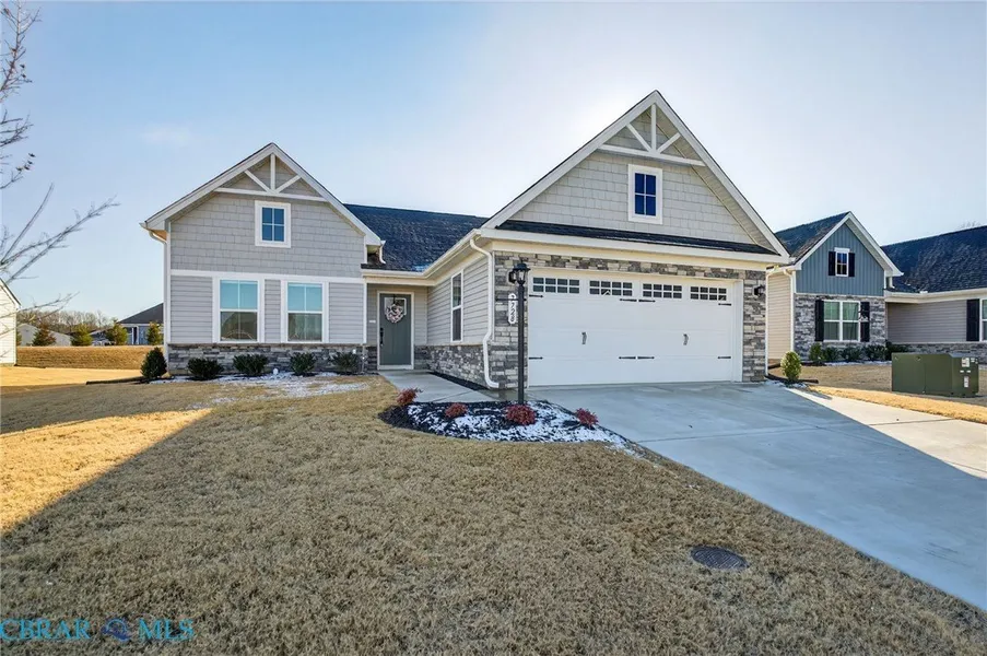Why wait a whole year to build when you can move into this immaculate, just like new, home today. One story, ranch/patio style home with no steps. Low-maintenance living with no yard work. Wonderful, open floor plan. Spacious family room with wood style flooring is open to a bright dining area & a gorgeous kitchen with a center island, white shaker cabinets, quartz countertops, stainless appliances & a walk-in pantry. King size primary suite with attached full bathroom with double vanity sinks, tile walk in shower & a huge walk in closet. 2 additional bedrooms and a full tile bathroom are located on the opposite side of the home. Large laundry room with a wash tub sink. Fully fenced in backyard with a back patio area. 2 car garage with automatic opener. Warm gas heat. Gas tankless hot water heater. Top-of-the-line amenities. 2 pools, fitness center, library, walking trails, grilling areas, pickleball & tennis courts, and 2 luxury club houses that offer hosted events by an on-site lifestyle coordinator. Conveniently located near grocery stores, farmer's market, dining, golf courses, wineries, public boat landings and easy access to Richmond and Williamsburg. Some photos are staged.
