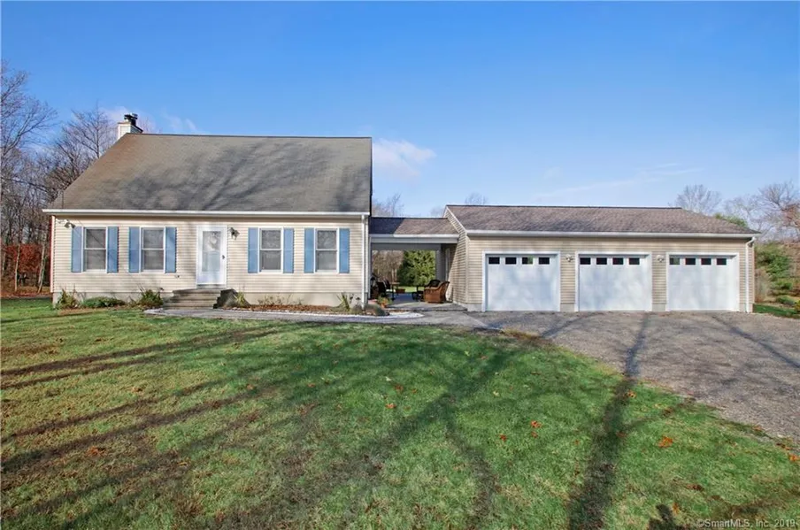 This Classic New England Cape is nestled in a peaceful neighborhood featuring a bright and spacious kitchen, 3 Bedrooms, 1.1 baths and boasts 2.37 acres. The Living Room and Den flow nicely from the kitchen allowing for open entertainment space. Enjoy the slider doors streaming lots of natural light that lead to an oversized deck. This homes extensive, level, and well groomed lawn is fabulous for entertaining, BBQ's and outdoor activities. A newer detached 3 car garage includes a 100 AMP sub-panel and allows for plenty of vehicle space as well as storage for other toys and hobbies one might have. Fantastic school system, easy access to RTE 16 and RTE 2, minutes to town center are all features that accompany this wonderful and well maintained home. It is also approx. 20 min. to Glastonbury, Hartford, Casino; and 30 min. to the CT Shore or Mystic. Take advantage of Colchester's 7 miles of Airline Trails for walking, hiking, running and horse back riding which connect to trails in neighboring towns. If inclined there are several stables in town for boarding, riding and lessons as well as nearby Hayward and Pickerel Lakes. This home is truly Move-In Ready, Easy to Show and Not to be missed.