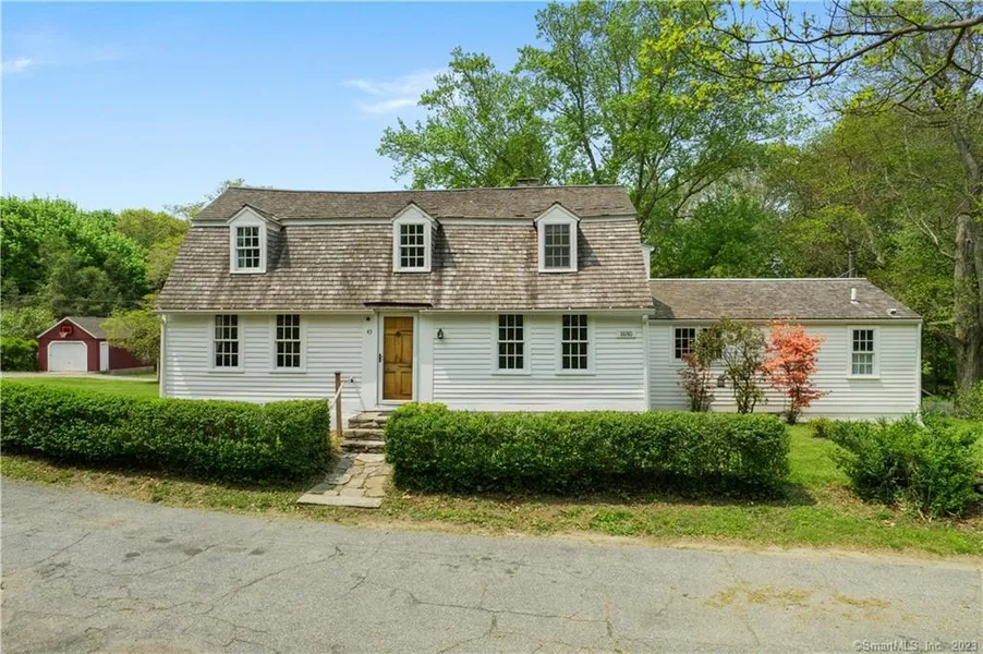 Welcome to your very own private retreat sited on 3 beautiful acres with lush lawns and fruit trees! Located at the end of the road and walking distance to the village, country club, town hall, schools, and library, this enchanting antique (c. 1690) gambrel is bigger than it looks and has peek-a-boo views of the CT River. Spacious and bright, the main floor offers wide plank wood floors throughout, a formal living room, dining room with original paneling, and an updated eat-in kitchen to host family gatherings. Also great for entertaining is the large family room/library with a wood burning fireplace, built-in bookshelves, and multiple desk areas. Step outside on the stone patio with a stone pizza oven for making homemade pizzas while dining al fresco on those warm summer nights! Finishing off the main floor is a converted office/BR, full bath, laundry closet, and mudroom with access to the newly built deck where you can enjoy the beautiful sunsets from your backyard. Upstairs is the large primary bedroom ensuite surrounded by windows with views of the expansive backyard. Three more bedrooms and a full bath plus reading nook complete the second floor. Need additional workspace? Utilize one of the two barn style garages to store lawn equipment and tools. There's also a sauna in the garage! Looking for antique charm but with modern amenities, this is it! This idyllic country home is minutes to I95 and two hours to Boston or NYC. At first look, you will want to call this Home!
