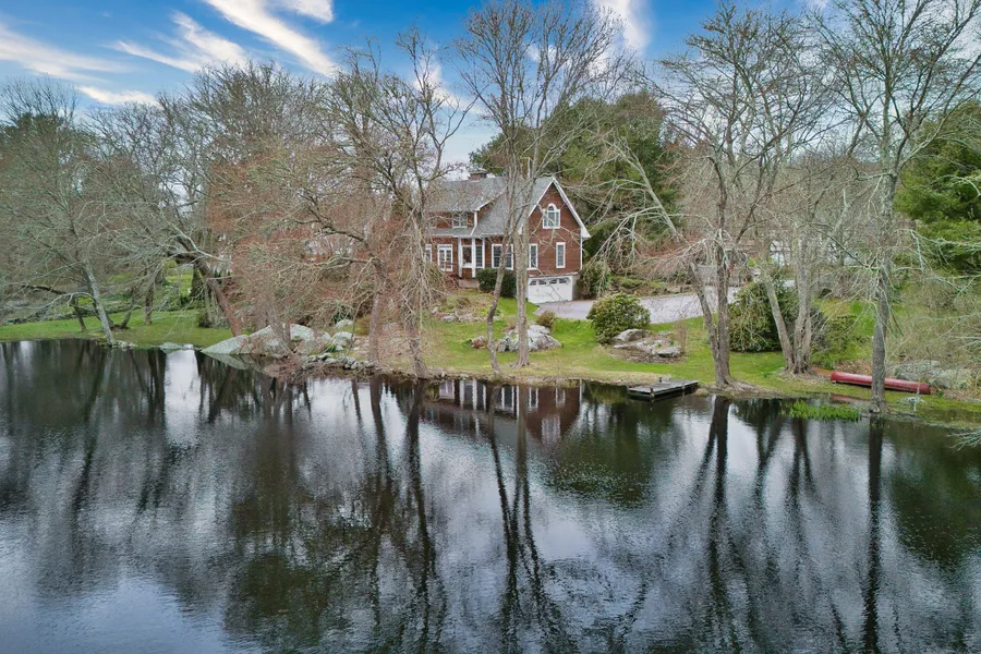 Nestled amidst the serene beauty of the Connecticut shoreline, this exquisite property offers a unique blend of natural splendor and architectural excellence. Spread over 11 acres, with the majority being a mesmerizing pond, the property is a haven of tranquility. The crown jewel of the landscape is undoubtedly the pond's waterfall - your waterfall - accompanied by a specially designed 'fish ladder', a testament to the property's harmony with nature. Built with meticulous attention to detail, it has been lovingly maintained, preserving its pristine condition. Boasting 2,600SqFt of living space, the residence features three bedrooms and two and a half bathrooms, seamlessly blending comfort with elegance. The inviting floor plan, enriched with natural light, offers a warm and inviting atmosphere, perfect for both tranquil living and grand entertaining.