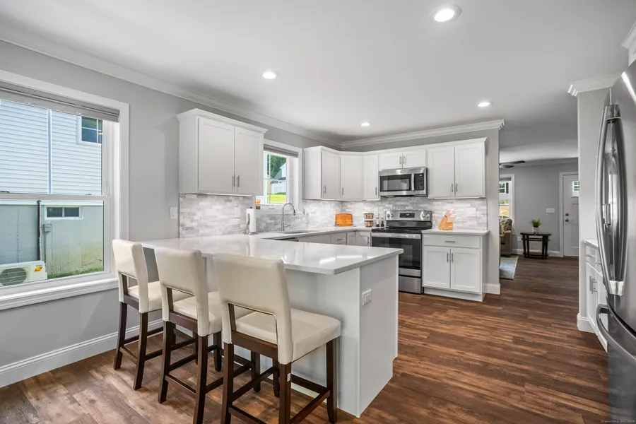 Welcome to your dream home! The exterior features a welcoming front porch that invites you to sit back and enjoy the serene surroundings. As you enter the living room you're greeted by an inviting area that exudes warmth and style. The focal point is a sleek recessed propane fireplace providing a modern yet cozy ambiance. Large windows flood the space with natural light. In this beautifully designed farmhouse, the open-concept layout seamlessly connects the kitchen,dining room,and living room,creating a spacious and inviting environment. The kitchen,with its quartz countertops and white shaker cabinets, anchors the space with modern elegance and functionality,offering ample cabinet storage to keep everything organized.The upper level presents a private serene retreat. The primary bedroom is generously sized and features two spacious closets,providing ample storage. The en-suite stall sho...
