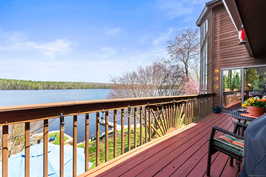 Breathtaking views of pond & forest for miles grace this majestic 0.25-acre waterfront property located directly on the shores of Beach Pond, complete with its own private DOCK. This spectacular 4 bed/ 3 full bath, 3,350sq ft home w/central air boasts at its heart, a picturesque living room with floor to ceiling windows and beautifully structured cathedral ceilings, whose space, light and charm invite that gorgeous vista into every level! Kitchen design/layout will delight the chef in you and opens to a dining area for additional seating. The timelessly elegant stone fireplace wall meets the private balcony of the primary suite above, allowing another enchanting perspective of water view. The primary bedroom on that 2nd level is expansive - includes a walk-in closet, small private balcony/deck, and ensuite bath with double-sinks, both walk-in shower & whirlpool tub for that spa bath hydrotherapy session you've been wanting. Main level - 2 additional bedrooms. Sliding door leads out to a deck & majestic, flowering-plant & foliage-filled backyard. Fully finished lower level - potential in-law/guest space, includes additional bed/2nd kitchen area & full bath. Walk out to patio area and the inviting entertainment (or relaxation) space of your backyard space. 2car garage. Generator. Solar panels (paid off by sellers at close). Meticulously cared for. Make the sweeping views and awe-inspiring nature of the 372-acre Beach Pond the location of your next home.