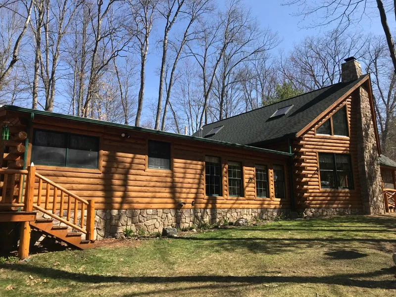 Custom built home: situated on 50.5 rolling acres and built with remarkable craftsmanship. The private estate is nestled deep in the woods and truly is a wildlife wonderland. The log sided home features 2,900 sq. ft. and offers 4 bedrooms and 2.5 baths. There is a large kitchen and dining area, along with spacious great room with vaulted ceilings, and a beautiful floor to ceiling stone fireplace. The master bedroom and laundry room are both located on the main floor. Grab a book or just enjoy the wildlife in the full log 12x16 ft. screened in porch.