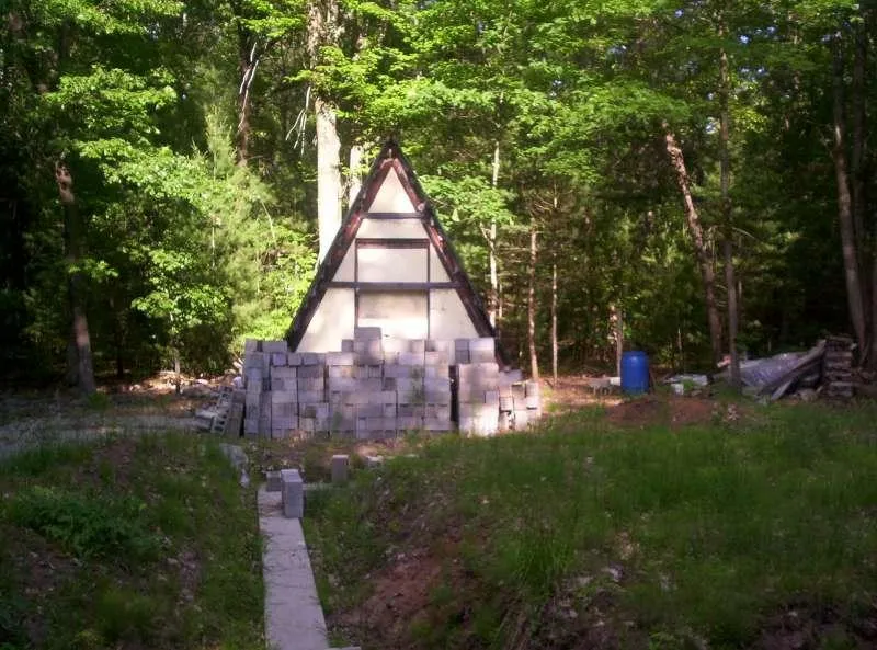 Nice wooded lot with storage building, footings and septic installed for a 24 x 32 building. The trusses are on site and will stay with the property. The lot is at the end of a dead end road and adjoins National Forest.