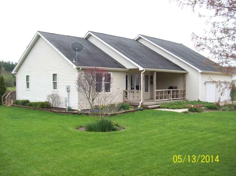 This home will simply amaze you. Featuring kitchen with large dining room, master bedroom with walk-in closet and bath with whirlpool tub. 3 large bedrooms on the main floor with a full basement which is finished. Sliders leading out to a deck overlooking landscaped lawn and a beautiful pond which is a childrens paradise filled with bluegill and large mouth bass. 2 stall garage and storage shed plus shelves in basement, you will have plenty of storage space. Special features include new geothermal heating, A/C system, new water heater, well pump 2012, Schuco windows on the main level, and a reverse osmosis system. This is a must see!