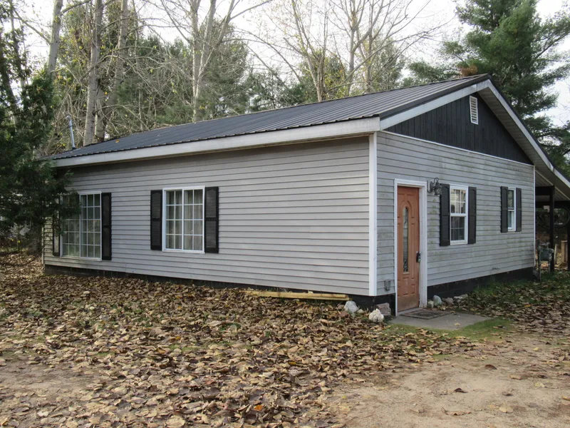 This home features low maintenance metal roof and vinyl siding. One bedroom and one bath home near Croton Hardy recreational park and Paradise Resort. Newer natural gas furnace, private backyard with fire pit, huge covered porch, on a double sized lot. Septic system is shared with neighbor.