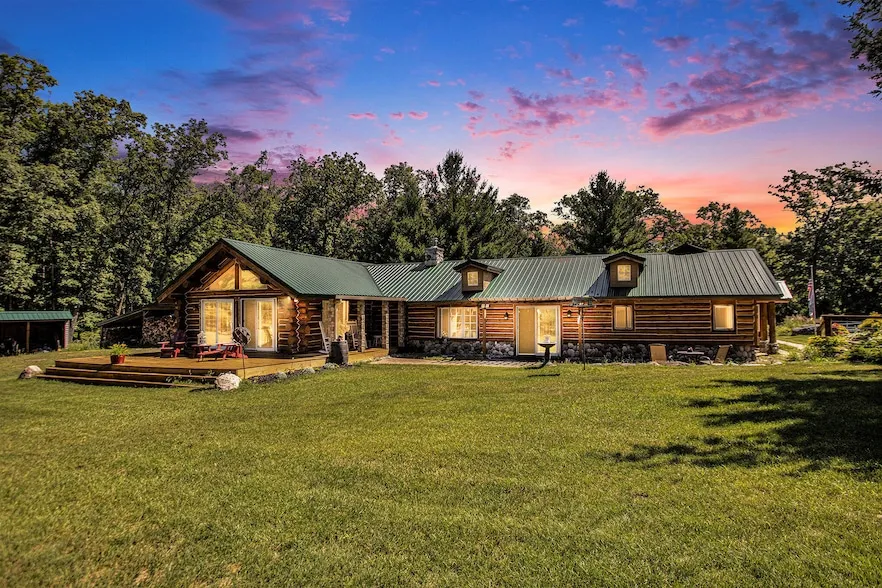 Welcome to your dream retreat this stunning log home sits on 100 acres of scenic land and includes a charming smaller home, perfect for guests or use as a VRBO rental. The main home features 3 bedrooms, including a spacious main suite, a large kitchen, vaulted ceilings, and a beautiful family room centered around a cozy fireplace. Outdoors, you'll find a tranquil koi pond, well-maintained pasture, and endless room to roam. A paradise for the hunting aficionado, the property includes 4 elevated blinds and 3 ground blinds, offering exceptional hunting opportunities. Whether you're looking for a peaceful escape, an income property, or the ultimate hunting retreat, this one-of-a-kind estate delivers comfort, adventure, and natural beauty in one unforgettable package.