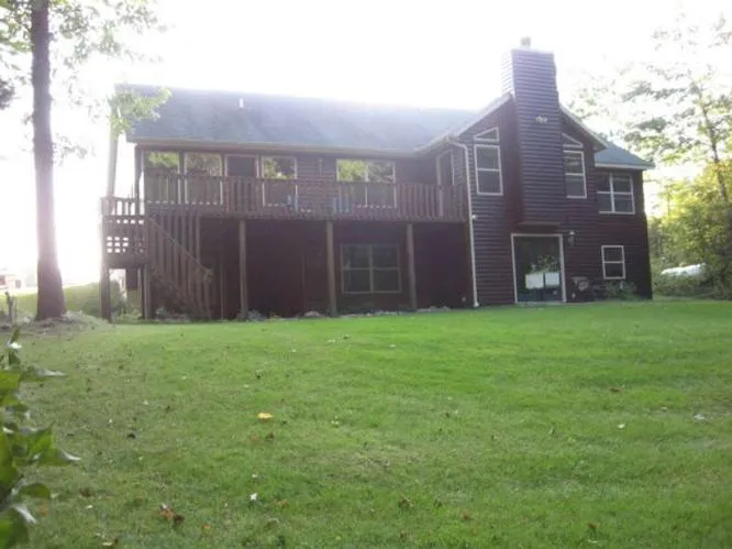 Muskegon Riverfront -Log home One owner-open floorplan. Large Kitchen w/separate laundry room . Formal diningroom. 3 Season porch area w/deck area over looking the private wooded river frontage,quiet,peaceful,dead-end road spot. Relax,sit back,fish,boat,tube? Maybe relax in the whirlpool in the mastersuite and watch the river drift by out the windows. Make a fire in the fieldstone fireplace or for extra warmth the vent-free gas heat fire-place in the walk-out basement can be turned on in the familyroom area. Home has a easy flow open floor plan a must see if your looking to buy . Only 3 miles from Newaygo and 10 miles to Fremont.