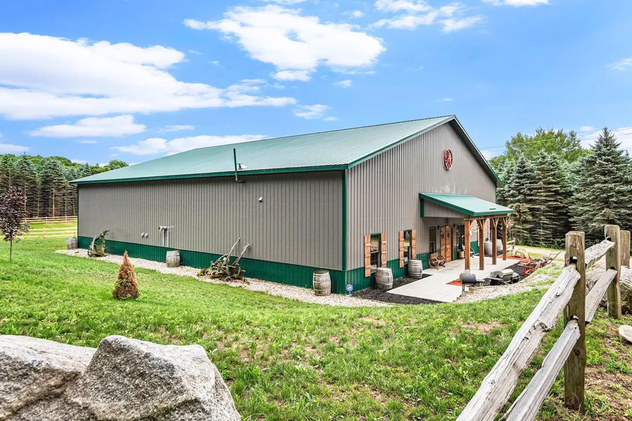 Welcome to this Barndominium Ranch with a cedar and oak fenced-in horse stable. Drive past the split rail fence down the driveway into this wooded oasis. The designer put the touches of his Arizona-living background into the finishes of this building. Located just north of Rockford, in the quiet area of Ensley, the ranch sits on just over 5 acres. This three-in-one interior features over 2,500 square feet of finished living space, a 12 x 30 airconditioned workspace with a 12-foot overhead door, and a massive pole barn storage area with shelving and room to park all the toys you have, which you can pull through the 14-foot overhead door. You won't find another 4 bedroom, 2 bath home like this anywhere. With warm wood finishes throughout, you'll enjoy the custom-made doors and cabinets, whiskey barrel sink bases, natural wood countertops, and double wood doors through the front entrance an...
