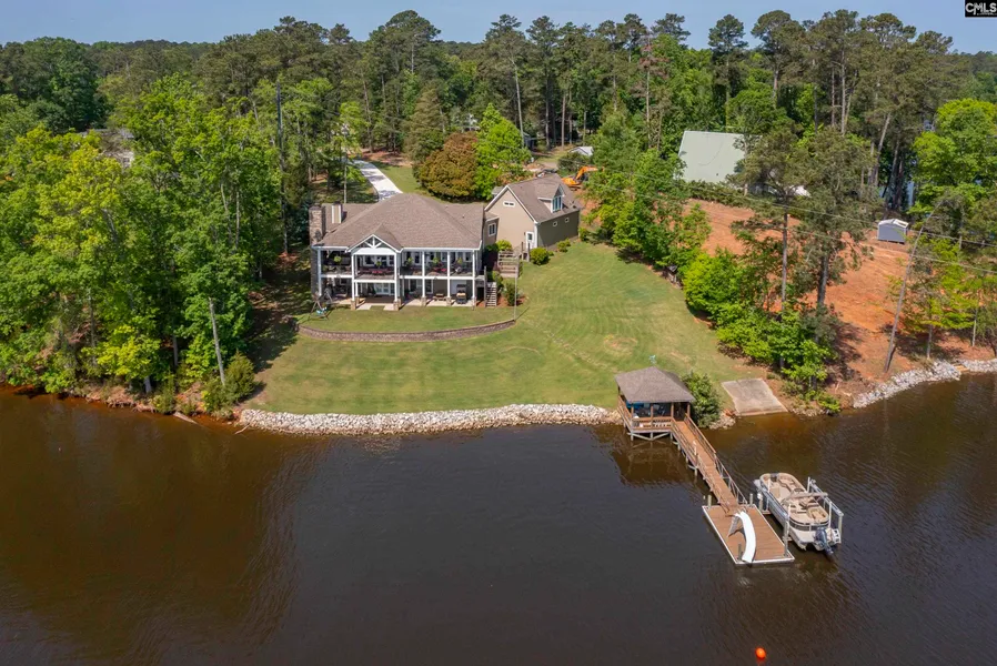 One of the Best Lake Homes to Hit The Market This Year! This custom-built masterpiece has 4390 sq ft, 5 beds / 5 baths and sits on a 1-acre point lot with 153' of water frontage and spectacular lake views! Outdoors you'll find over 2400 sq ft of covered porches w/vaulted ceilings, a wood-burning fireplace, TV, and built-in kitchen. Such a great place to entertain - Can't adequately describe how AWESOME this deck really is. Sellers thought of every detail inside. Large, open floor plan combines the great room, kitchen, formal dining space and sitting area with a wall of windows to enjoy the lake. Kitchen is a dream come true with large breakfast bar, island, wine cooler, and lakeside eat-in area. Other custom features include gorgeous hardwoods, gas fireplace, 12' ceilings, 9' interior doors, oversized windows and a separate office. All bedrooms have private baths. Primary bedroom has big...