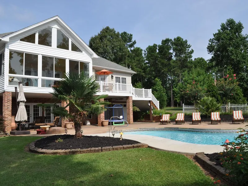 Imagine having the consummate vacation resort home as your primary residence! (Or keep it as your perfect 2nd home lake destination as all the furnishings are available for sale.) Beautifully decorated, 2-level, 4-bedrm + office home has comfortable open plan, tiled sunroom w/ fabulous view, Family/Game Rm w/ wetbar/kitchenette, easy-care in-ground salt pool, double boathouse w/ lifts, plus a double jet-ski boathouse w/ lifts. And a large workshop. And loads of storage. Quality home is graced w/ gleaming oak floors, high ceilings, warm, rich colors, & granite/custom counters thru-out. A formal DR area, Great Room & Eat-in Kitchen all open to each other making it easy for entertaining family & friends. Great Rm features built-ins on both sides of a gas FP, & French windows/doors leading to a glass walled, vaulted ceiling Sunroom that brings in the lake view. Kitchen has a granite breakfast bar & eat-in nook overlooking the deck & pool, double sink, gas stove, tiled backsplash, smooth cooktop, & custom cabinets w/ excellent storage. Enjoy one of the nicest laundry rooms you'll ever come across w/ custom cabinetry, granite counters, & sink, & W/D stay. Master Bedroom on the main floor w/ trey ceiling & private exit to deck. Master Bath has a jetted tub, a beautiful custom shower w/ scalloped glass doors, & very large Walk-in Closet w/ "california-style" organizer system. Two or three more bedrooms are on the main level in a desirable split plan- one of which is a great office- looking out at the pool & lake, + having private access to the Sunroom. Shared bath is handicap-friendly. A 4th Bedrm/Bath Suite is downstairs, & what a downstairs! Large Family/Rec. Rm has space for all the game tables your family enjoy, a tv area, eating area, & a Bar/Kitchenette w/ tile floor, granite counter, sink & full-sized fridge. French doors w/ their own tiled foyer area lead outside to the patio & pool. Another door leads to the Garden Garage. Someone in the family is going to LOVE throwing open the single-garage door that faces the lake & houses a deep storage garage that has room for the workshop of your dreams. This property takes full advantage of the back yard. Inviting pool is up to 8-ft deep w/ diving board & 'lily pad' waterfall, & is engineered w/ an ozonator salt system requiring substantially less chemicals, & resulting much cleaner, fresher water. Relax on the white sand beach area w/ palm trees! Stroll down the path to the Gazebo w/ bench swing. Get ready for year-round fun on Lake Greenwood- large dock on a wide pretty cove offers TWO covered boat lifts & an another covered jet-ski house/lift for 2 skis. Keystone retaining wall & year-round deep water access. Energy efficient home has two HVAC units, including a geothermal system, 2 hot water heaters- including one on timer so you have instant hot water when you want it. Home is under termite bond. 2-car Garage leads to a side pergola. 30-yr Architectural roof. Furnishings, golf cart, pontoon, jetskis etc. available for sale via separate bill of sale. Love Your Lake Life!