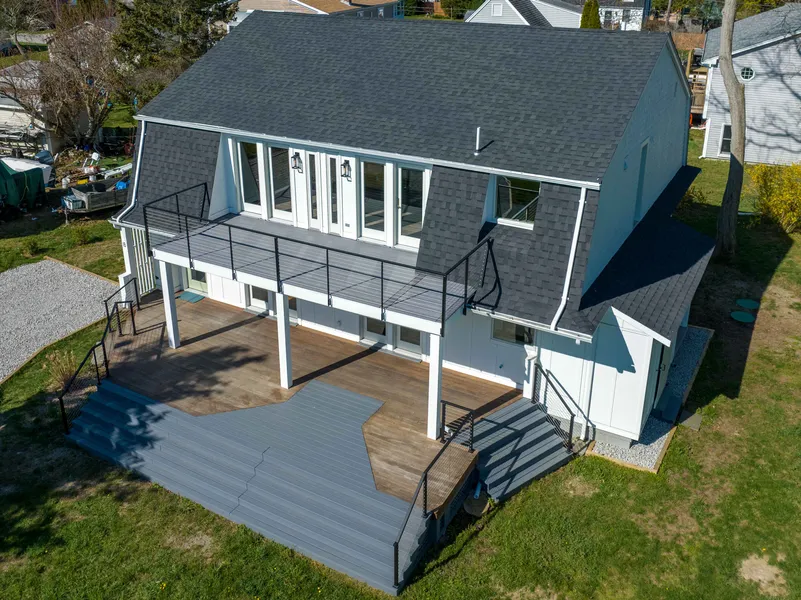 8 Judson Ave is a stunning, like-new Dutch colonial home located in the sought-after Common Fence Point neighborhood. This property has two primary suites so it is a great residential home, second home or multi-generational living. One of the unique features of this property is its reverse floor plan. The first floor has a living room that open to a deck, a primary suite, bedroom, full bathroom, laundry room & wet bar. The second floor has an open concept great room & kitchen and fun loft space. It also has a second primary suite, bedroom & full bathroom. The open-concept great room and kitchen are perfect for entertaining, and the large windows and glass doors flood the space with natural light and open to a deck that expands the living space. The updated kitchen features top-of-the-line appliances, luxury cabinets and sleek quartz countertops, making it a chef's dream. Each of the four bedrooms are spacious and comfortable, with plenty of closet space and natural light. The four updated bathrooms feature high-end fixtures and finishes, adding a touch of luxury to this beautiful home. With its coastal feel and updated finishes throughout, 8 Judson Ave is truly a turnkey property. Property as easy access to the water, community center & parks.
