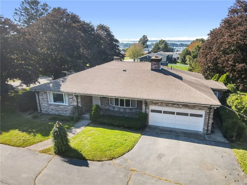 PRISTINE MID CENTURY RANCH WITH WATER VIEWS! Meticulously maintained and lovingly kept in classic 1960s style, this peaceful home has beautiful views of the Sakonnet River and the Mount Hope Bridge. Enjoy broad views from the spacious eat-in kitchen, dining area and from the sunroom/TV room with its wall of window. Step right out to a lovely private deck. Entertain in the very large living room highlighted by a (Tennessee) stone fireplace with built in shelves. Private hallway leads to the 2 generously sized bedrooms, tiled full bathroom with ample storage and huge laundry room with workspace and more storage! The lower level of this special property holds a very large finished and heated room with fireplace, space for office, dining, playing, theatre, exercise, pool table, etc! And, a fantastic 1960's wet bar makes for a perfect fun retreat! Basement bedroom and walk out to back yard fi...