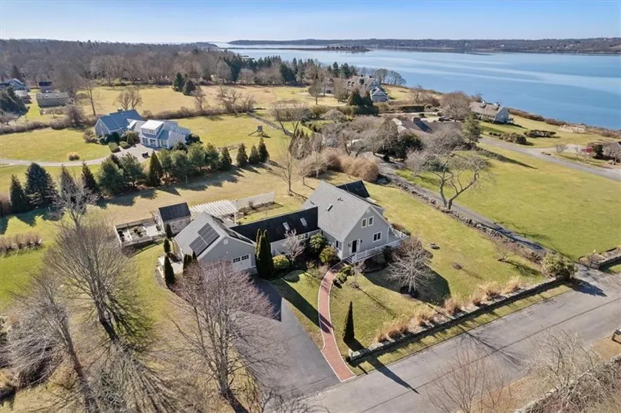 A SLICE OF PARADISE! Step in and fall in love with this charming, picture perfect home featuring pastoral salt water views of the Sakonnet River. This home is located on 2. 1 acres in a private assoc. with only 5 homes and association beach! Nature Preserves and Estuaries surround the home offering the lucky buyer privacy and serenity. Custom craftmanship prevails! Light and airy interior. New Trex decking surrounds 3 sides of the home. New glassed solarium floods the gourmet kitchen with natural light. Whole house 35 K commercial grade generator with Caterpillar engine. The custom potting cottage with heat and copper potting table is perfect for serious gardeners. Entertain under the covered pergola w/Sunbrella cover. 2 flexible finished rooms with closets in the basement. Lush grounds, and abundant perennial gardens abound. Alarm system. Water views of the Sakonnet River and estuaries ...
