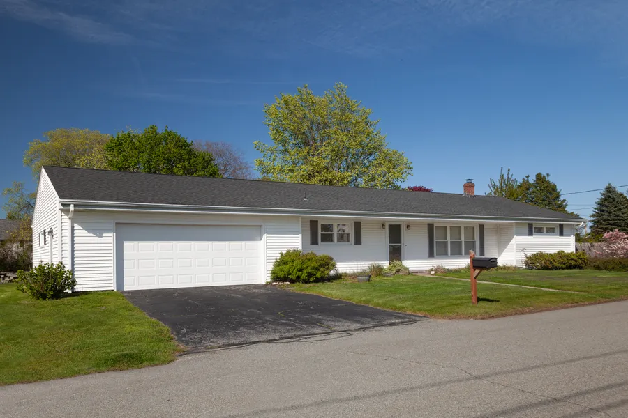 1600 sq feet of one level living. 2 bedroom ranch with LARGE rooms and a nice office with built in desk. Hardwood floors. Main bedroom does have updated private bathroom. Good closets. Huge unfinished basement with potential for more living space. Vinyl siding, 2 car garage. Located on quiet dead-end street in North Portsmouth. Super cconvenient to highway/route 24. Older kitchen and bathroom, but worth the effort to improve!