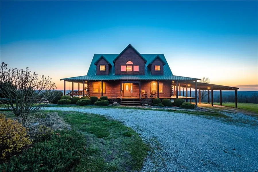 One of a kind property just 4 miles from Ponca Arkansas, and The Buffalo River, Just outside national reserves, About 9 miles to Boxley Valley and the elk herd. THis property features 2 houses. 550 acres MOL with the main house on the mountain top. View the bluffs that have made this area so popular from the porch. Wood Horse stable, huge storage building, a couple of ponds, and loads to discover. Interior of home is cedar. Outside front is professionally landscaped and maintained. Fencing surrounds home.